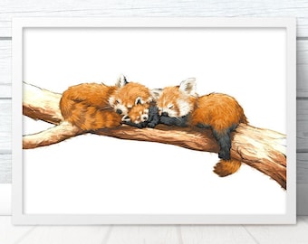 Panda painting, glasses, black background, copy space, red, portrait. Get up and play with me. Cute red panda vector clip art. Cute hand painted panda painting on canvas 9x12.