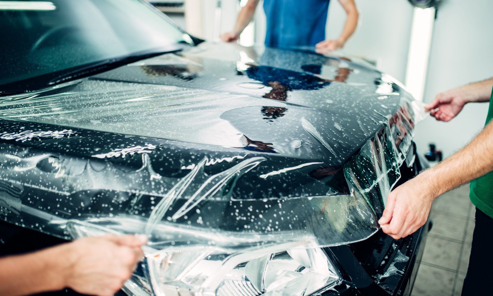 An invisible 8 mil thick film is expertly placed on body panels.