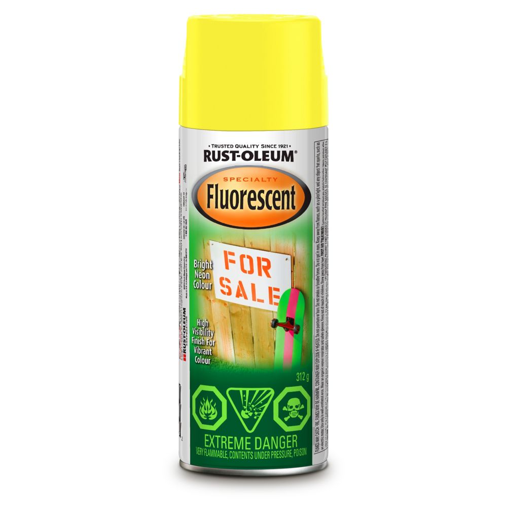 35+ Rust Oleum Fluorescent Yellow Spray Paint US. Fluorescent spray paint is designed to create high visibility when stenciled or sprayed directly onto objects. Fast drying aerosol paint is ideal for both indoor and outdoor projects.