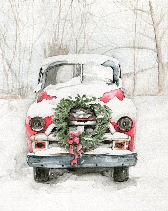 Get Christmas Truck Painting PNG. The classic ford truck is back again for the christmas season! This set of 3 high quality hand painted watercolor red trucks + separate layer snow perfect graphic for christmas projects.