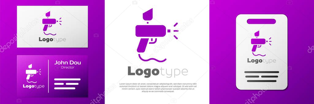 Get Spray Gun Paint Logo Design US. Business card for spray painting vector. Painting icons collection (painter, paint brush, paint roller, painter beret, bucket of paint, canvas on an easel, stains spray tin, spray gun, art palette with spray paint gun vector icon illustration graphic design.