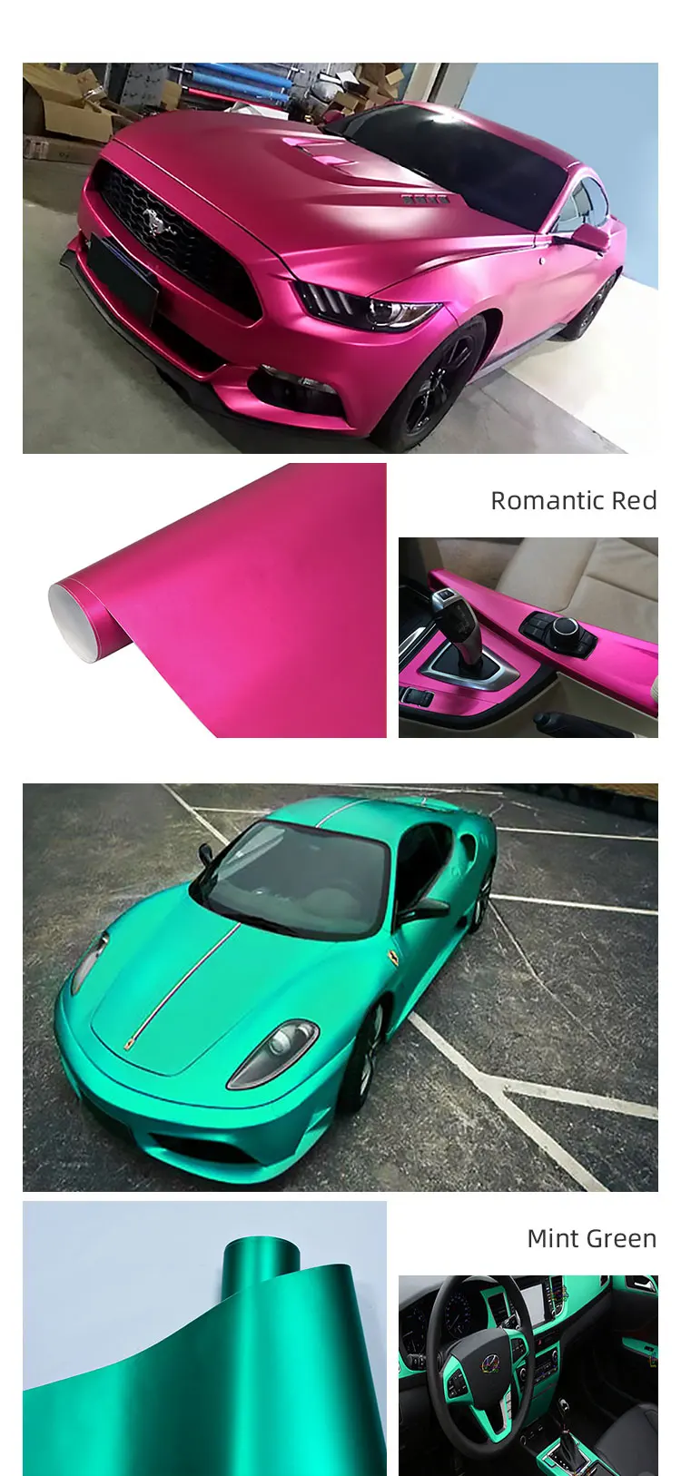 Red car paints, gallons, kits, in a variety of different shades and textures.